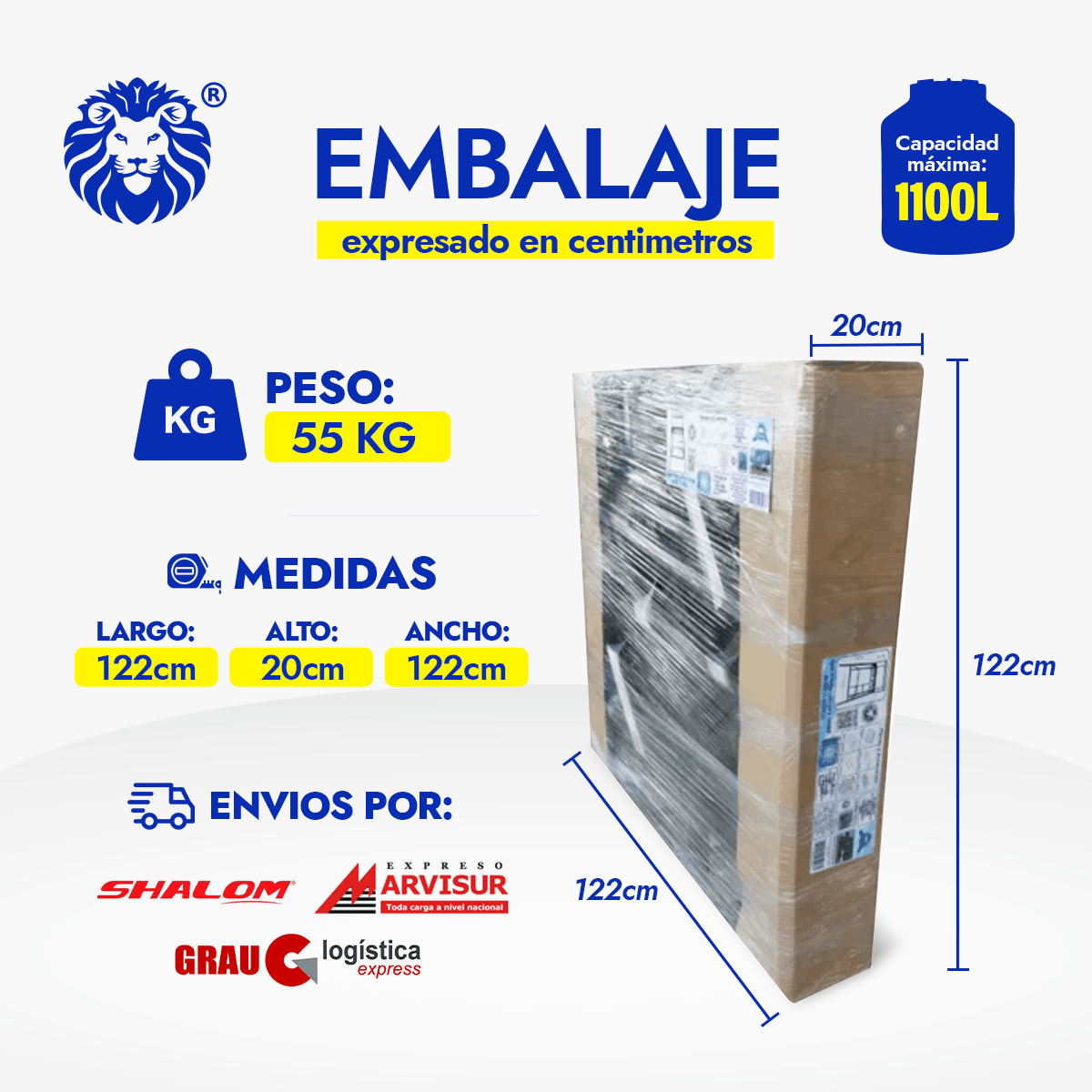 Diseñada para máxima resistencia y durabilidad. Soporta hasta 2500L con total seguridad. Armable, fácil de instalar y compatible con todas las marcas. ¡Ideal para proyectos exigentes!